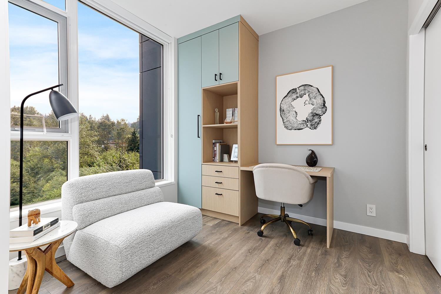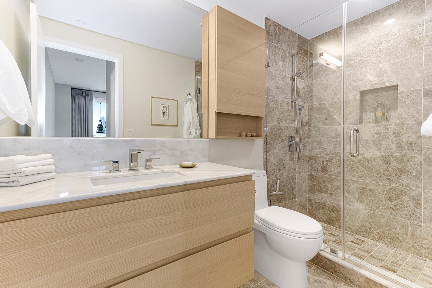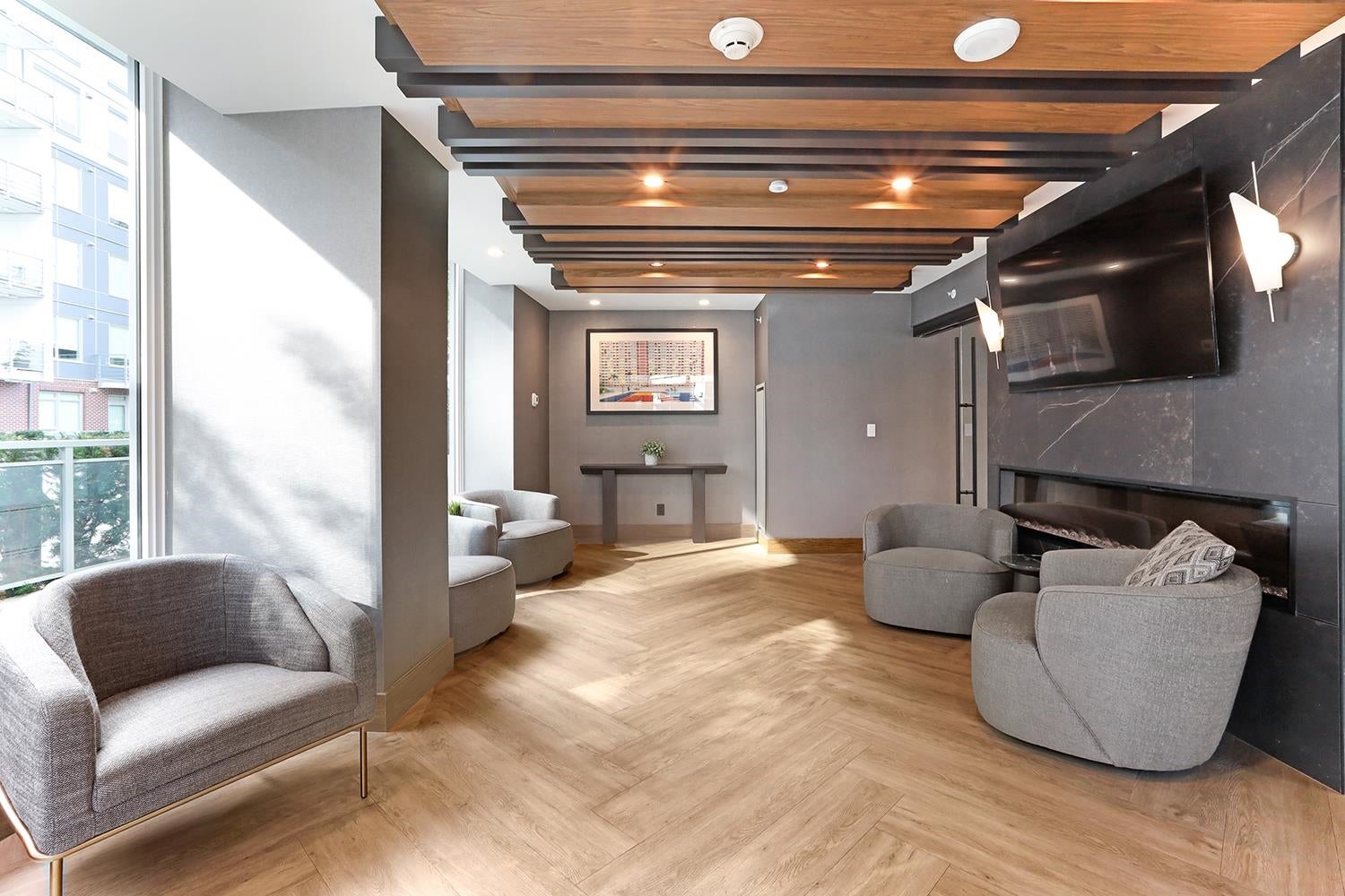 SPECTACULAR 2 Bed, 2 Bath Corner Home | Premier Concrete Building in Port Moody This 3-year-old residence combines modern elegance with comfort. Featuring 9-foot ceilings, air conditioning, and peaceful green space views. Incredibly low maintenance fees! Over $35,000 in custom upgrades including: a Ecobee smart thermostat, designer paint throughout, built-in shelving and drawers in all closets. Nu-heat floors in the ensuite, walk-in closet, upgraded fixtures, hardware, and new carpeting in the principal bedroom. Chefs kitchen w/ fully integrated euro-appliances, gas range, stone island & countertops. EV parking stall & full size storage locker. Walk to shops, transit, trails. Amenities include an outdoor pool, guest suites, fitness centre, & more. OPEN HOUSE SAT & SUN FEB 14/15 1-3PM